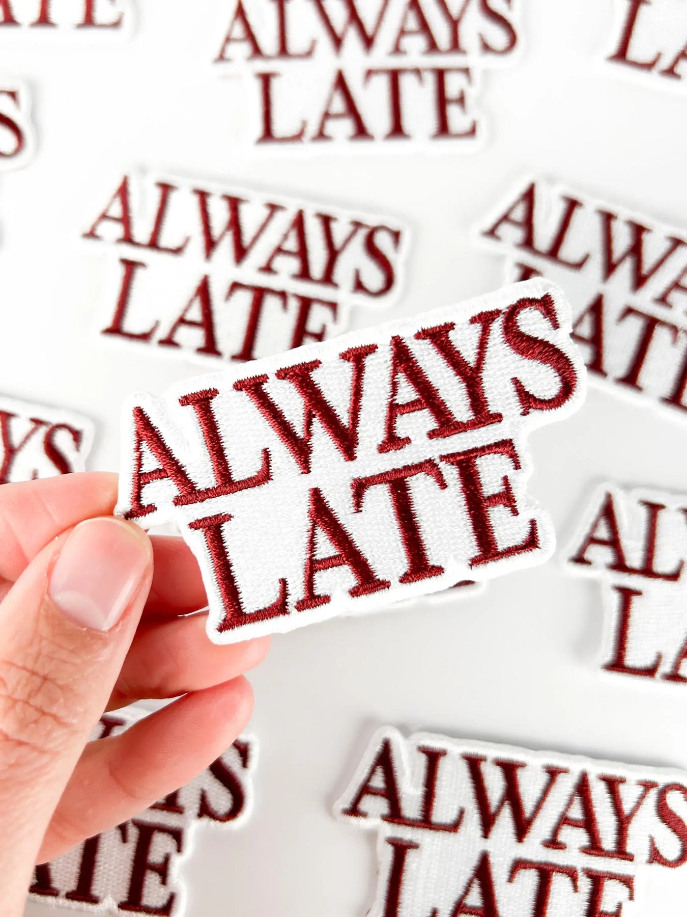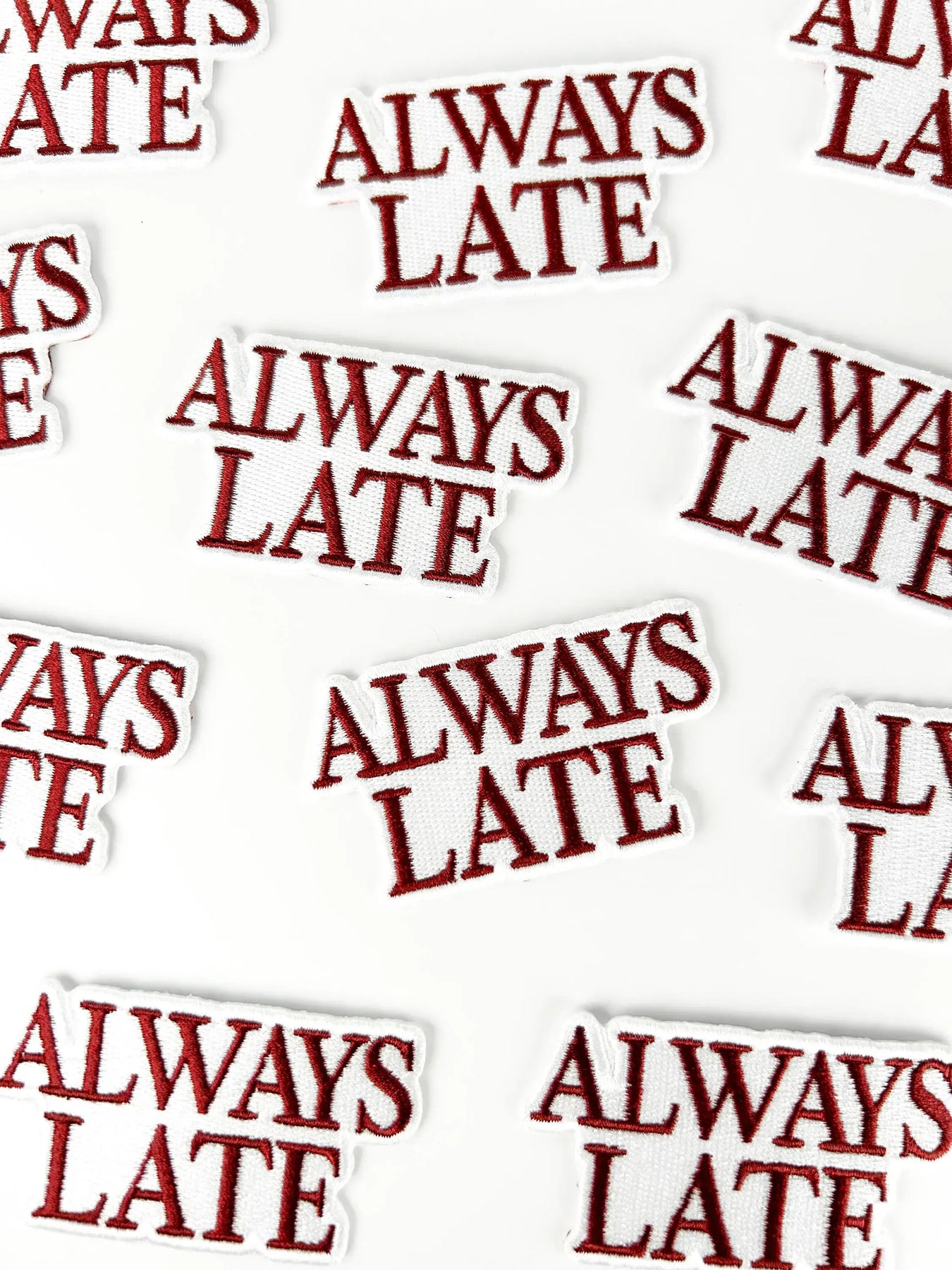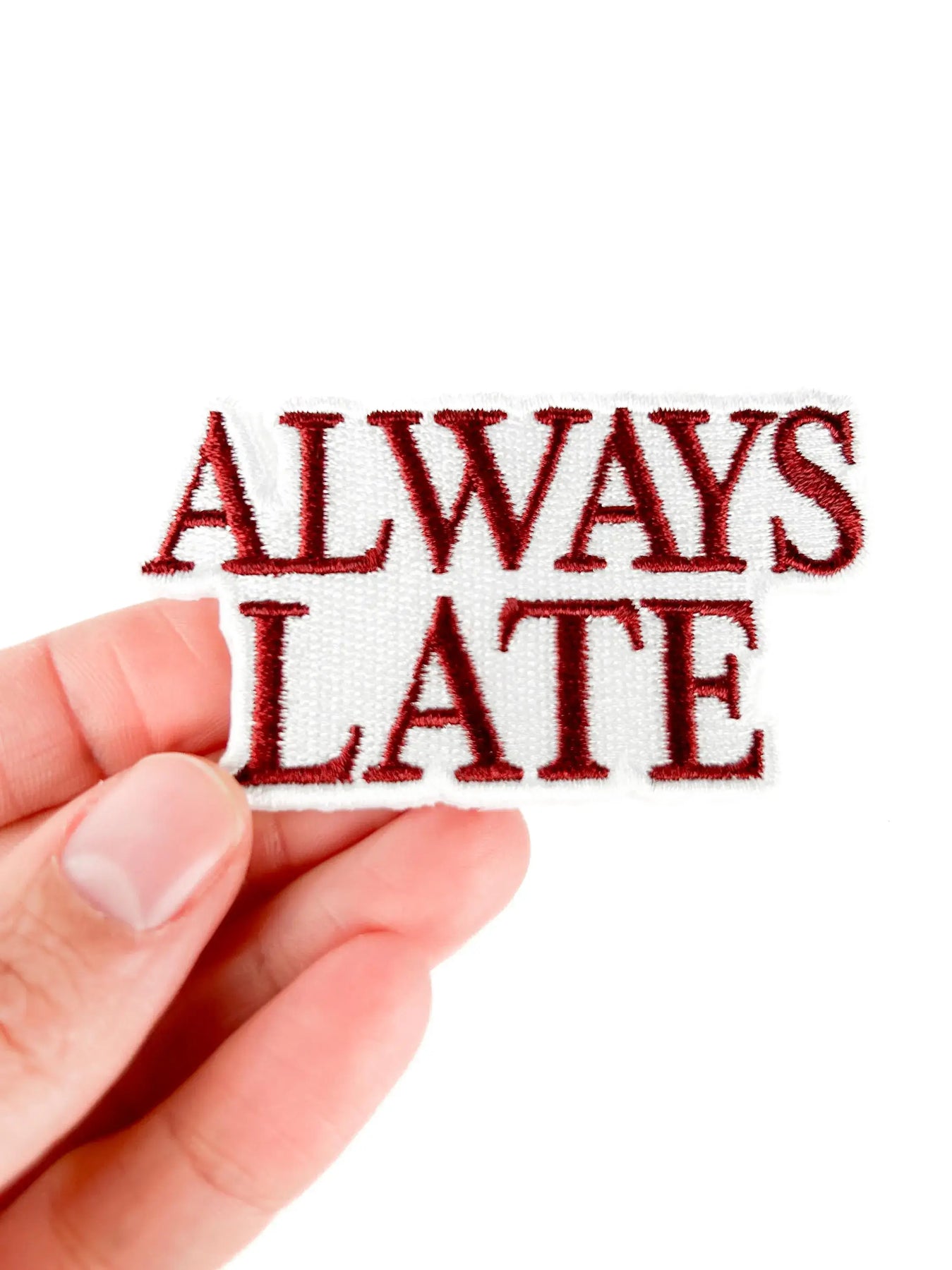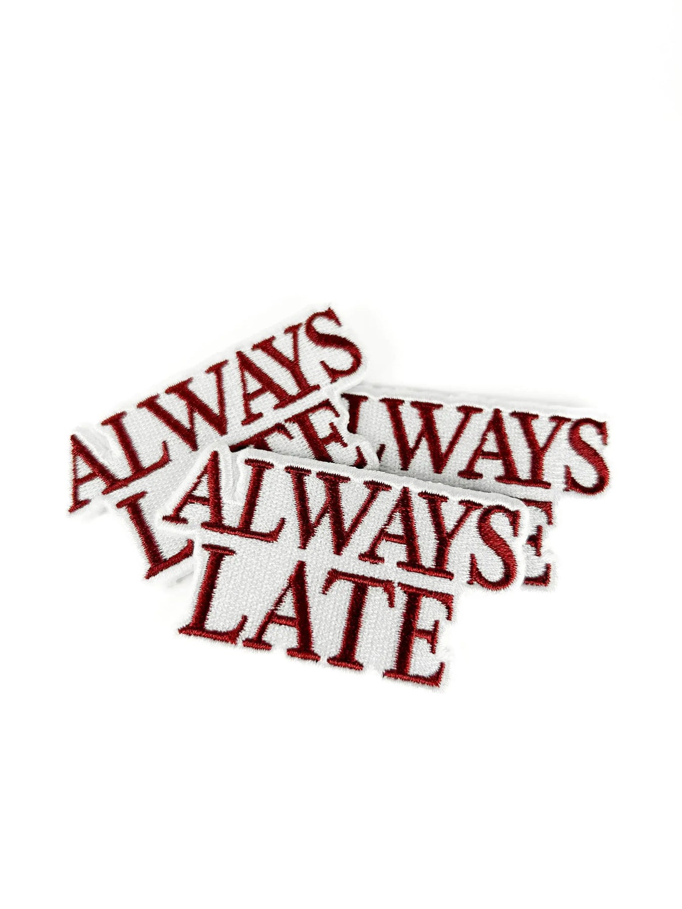 Funny & relatable design: “ALWAYS LATE” is perfect for people who can’t seem to show up on time. High-quality embroidery: Durable stitching ensures it looks great and lasts for years. Easy to apply: Iron-on backing makes it quick to attach, or sew it on for extra hold.