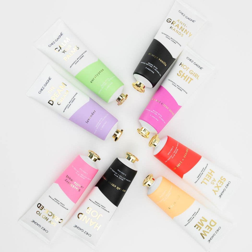 Bold, confident, and smooth - just like this crème. Sexy As Hell is a best-selling hand crème that blends nourishing cocoa butter and fast-absorbing jojoba oil to hydrate dry hands without the greasy feel. The cypress and juniper scent is crisp, woodsy, and elevated - making it a unique self-care essential that feels fresh and luxe. Clean, vegan, cruelty-free, and made in the USA, this is perfect for everyday hydration that feels a little extra. Packaged in a recyclable tube with a chic gold cap, it’s a functional gift that doubles as a statement piece.