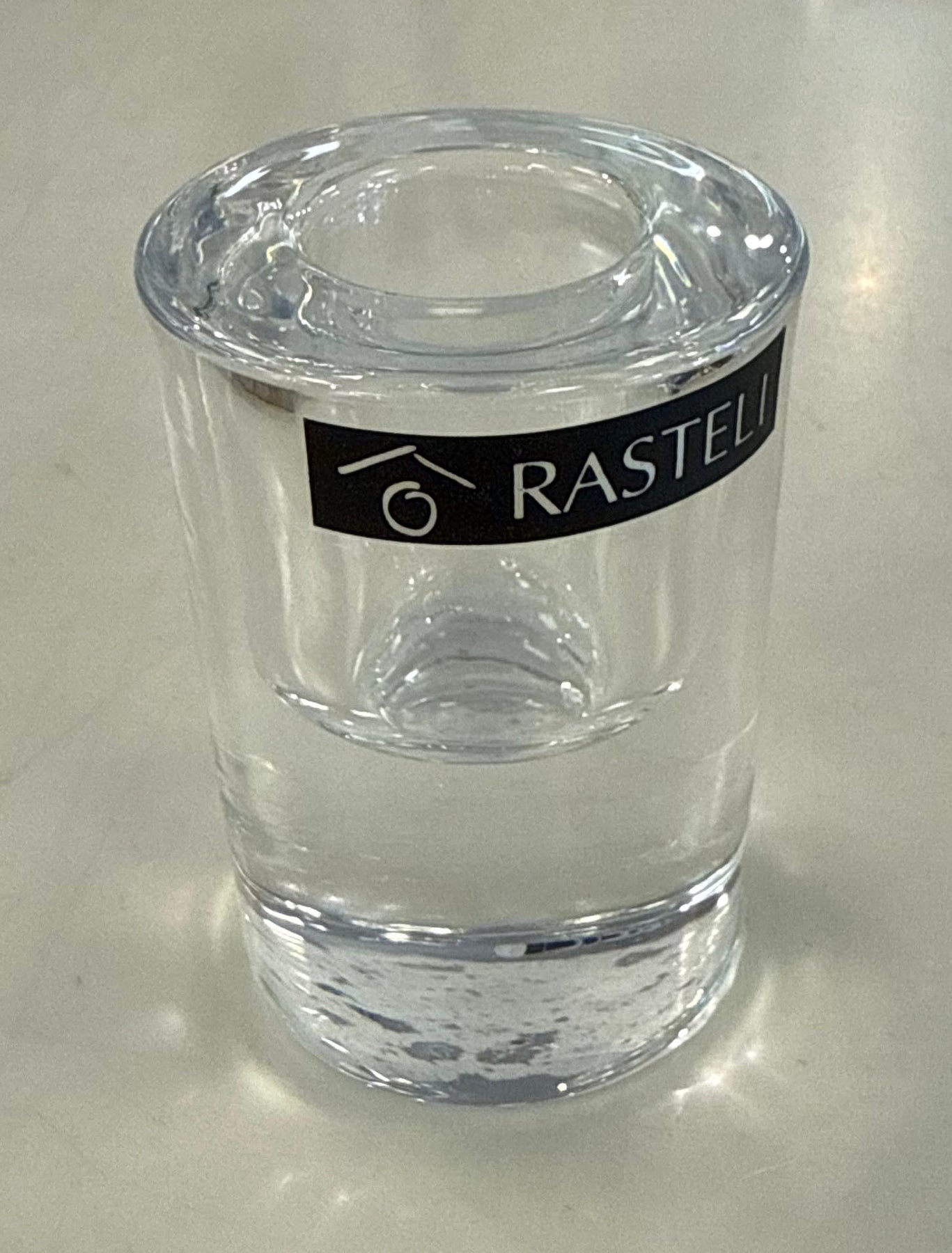 Simple glass taper candle holder. 1.75" in diameter x 2.5" tall.