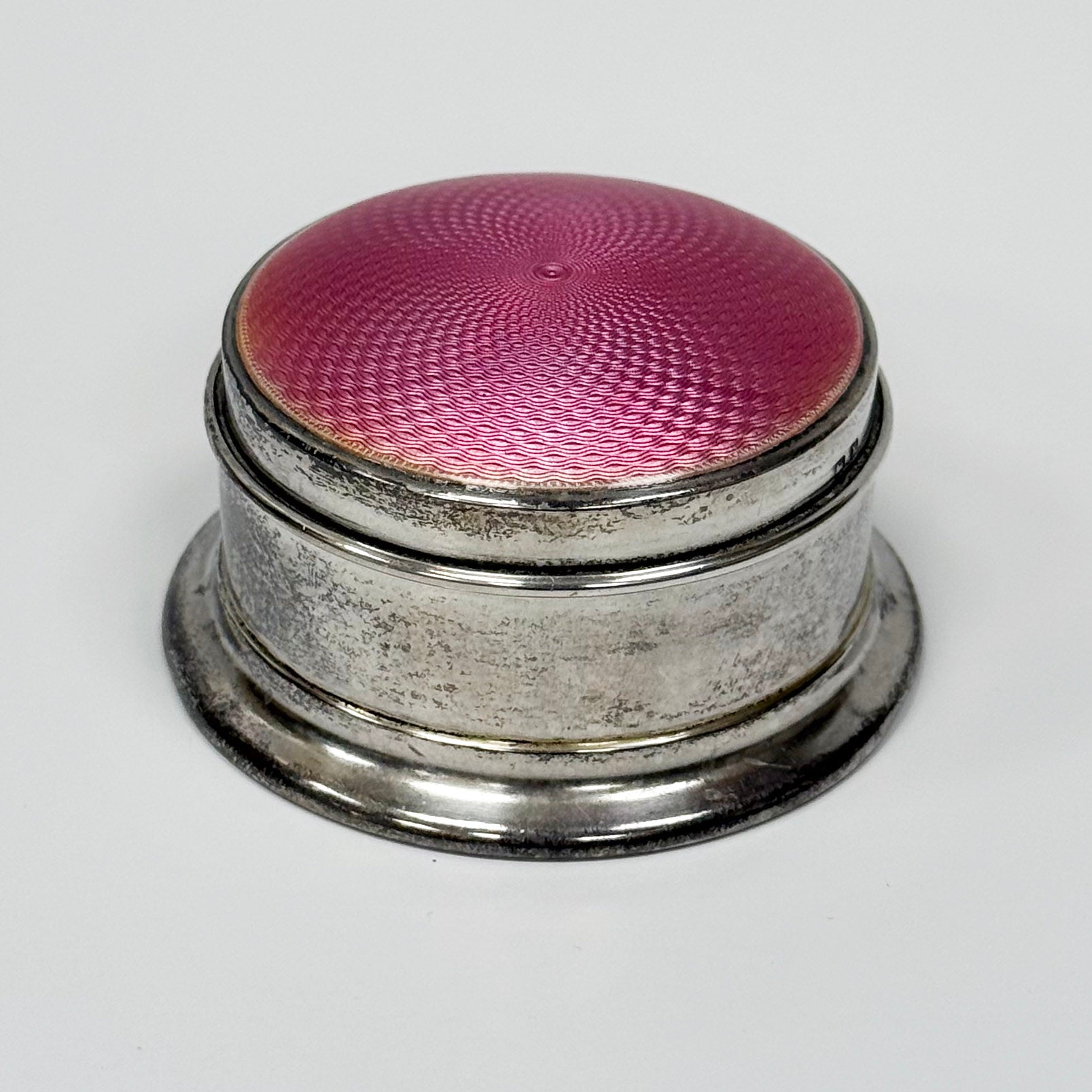 Sterling Silver container with pink Guilloché Enamel lid