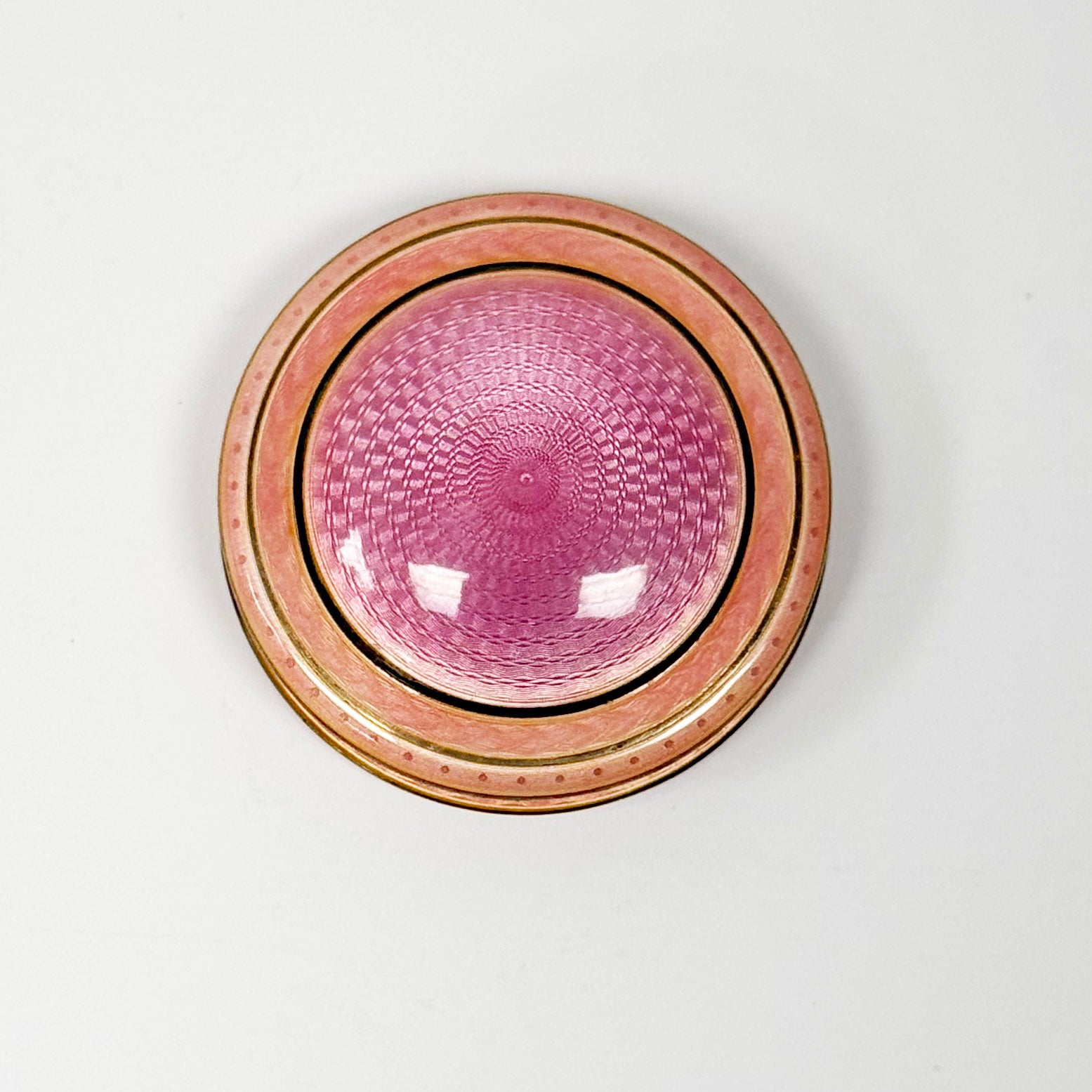 Sterling Silver and pink/peach Guilloché container with lid