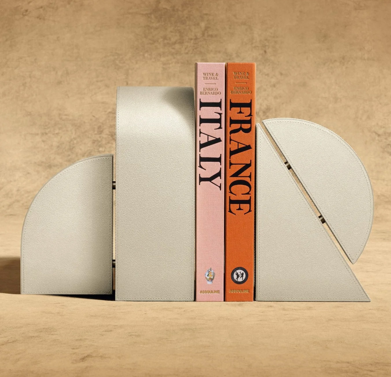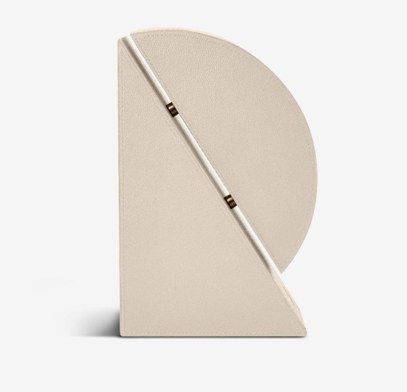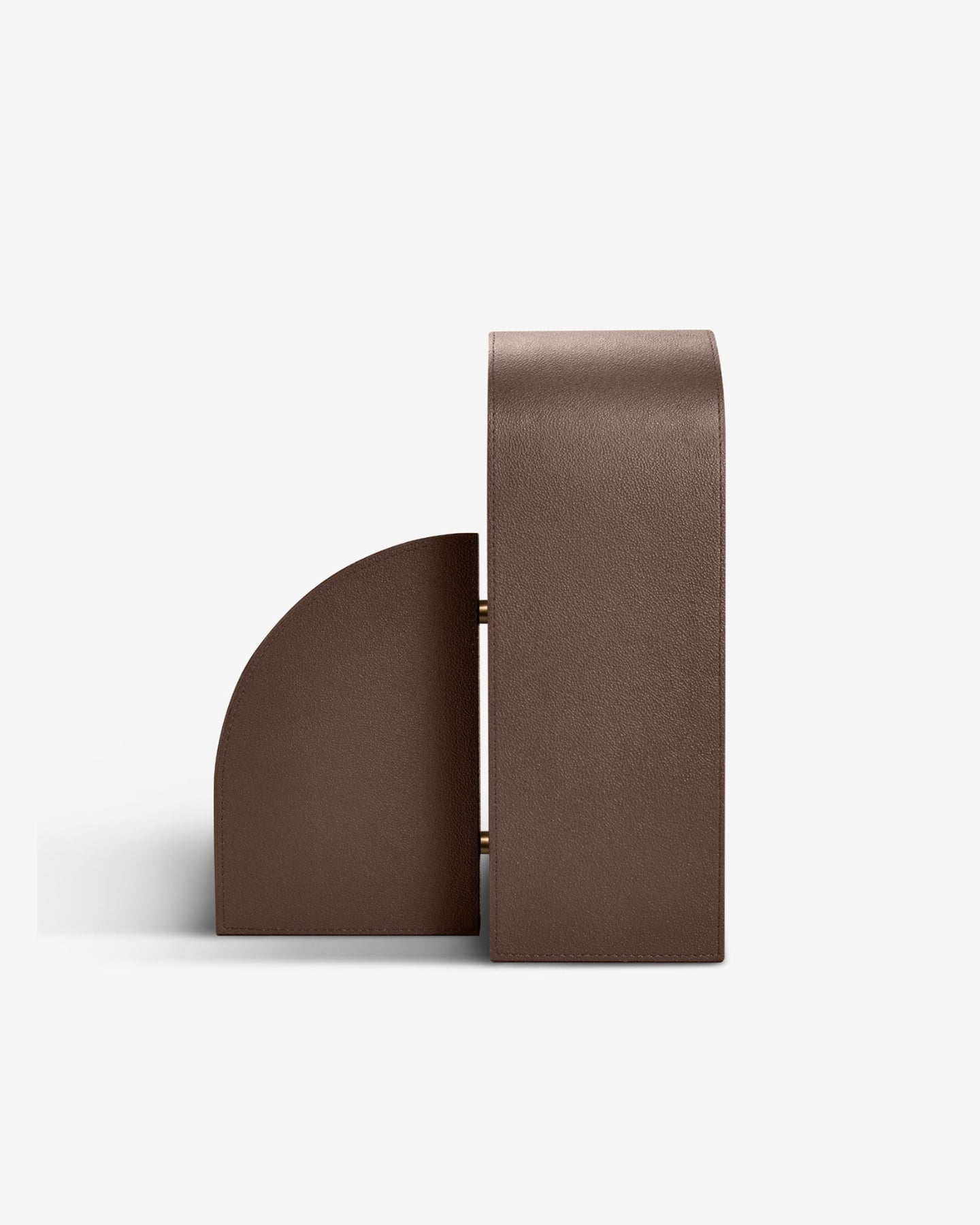 The Cubist Bookends combine the worlds of design and art. Inspired by the iconic art movement, these sculptures are wrapped in pebbled leather and feature subtle brass hardware, making them perfect for cultural connoisseurs. Sold separately, each piece features its own distinct character, highlighted by smooth curves and a modernist flair.