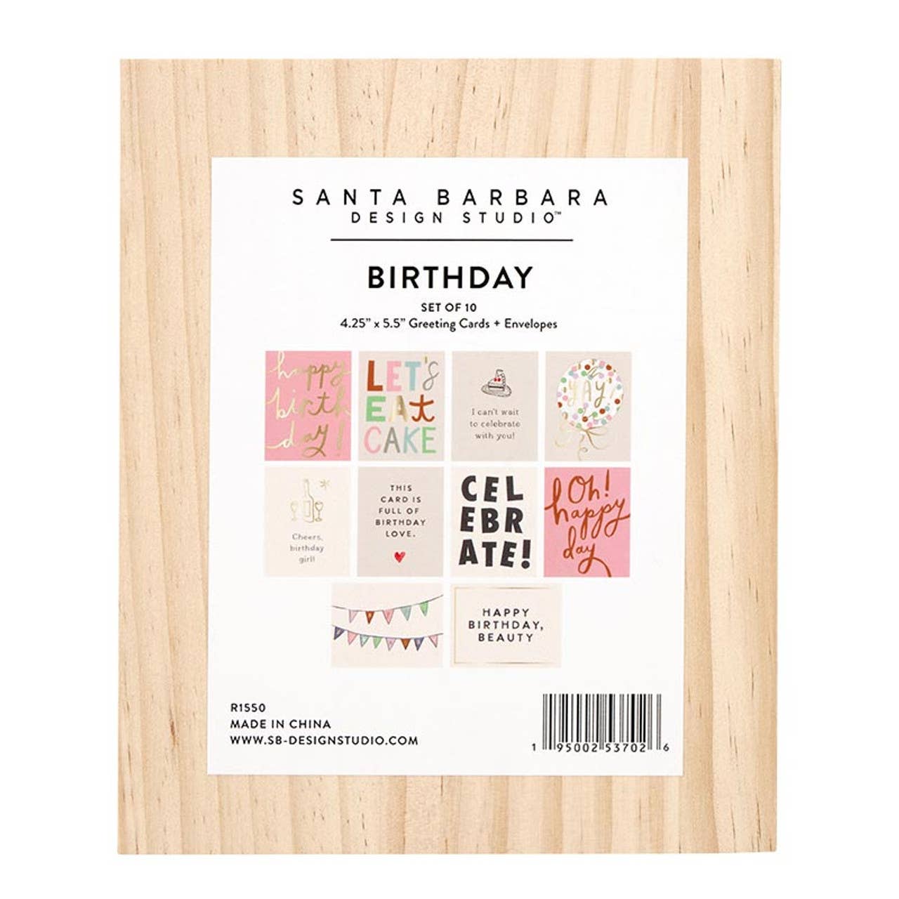Celebrate loved ones' birthdays with this delightful set of 10 assorted birthday cards. Featuring accents of metallic gold with colorful designs and packaged in a keepsake wooden box, this set makes it easy to have the perfect card on hand for birthdays throughout the year.